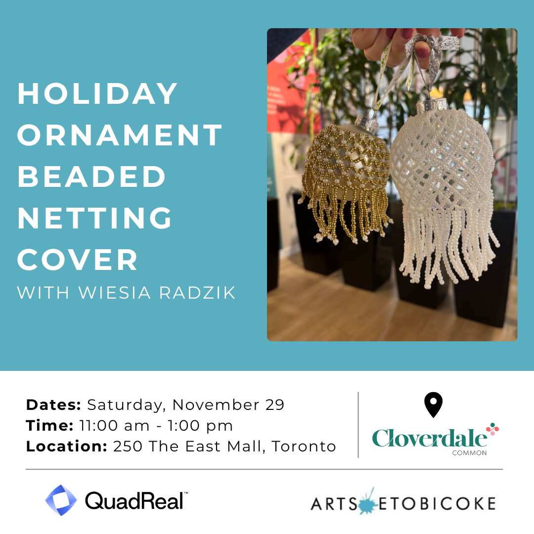 Come create with Arts Etobicoke in a two-hour creative workshop where you’ll learn how to craft a stunning beaded netting cover for a classic round ornament—perfect for holiday decorating or as a heartfelt handmade gift.